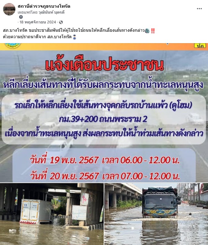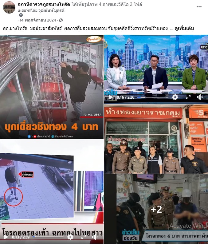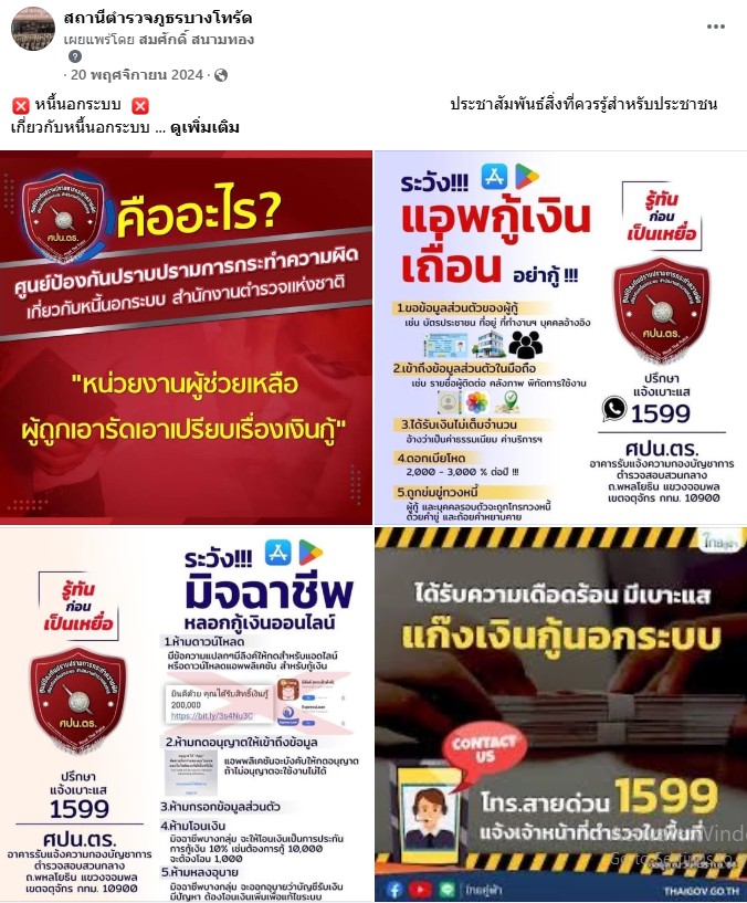เผยแพร่สื่อสังคมออนไลน์ ทางเฟซบุ๊ก สถานีตำรวจภูธรบางโทรัด