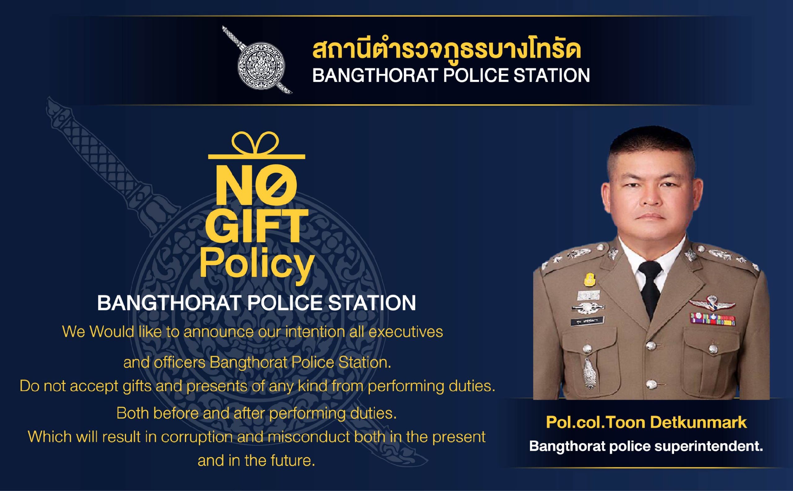 การมีส่วนร่วมของหัวหน้าสถานีตำรวจ โดยมีการประชาสัมพันธ์ป้ายประกาศไม่รับของขวัญ และของกำนัลทุกชนิด